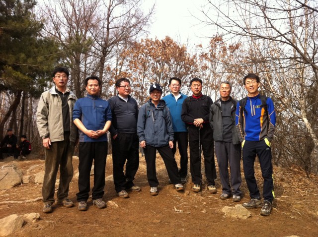 민동 산객들은 영장산 정상에 올라, 가져온 과일과 커피를 든 뒤 새마을연수원 쪽으로 하산했습니다. 뒷풀이는 막걸리와 오리훈제를 곁들여 걸쭉하게 이어졌습니다. 지난 2월 졸업식 때 명예학사 학위를 받은 이효율 회장(현 풀무원 대표)이 한턱냈고, 이훈 민주동우회 회장이 5월 의기제 계획을 비롯한 민주동우회 운영계획을 설명했습니다.