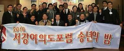 서강여의도포럼(회장 78 정외 고성학, 두 번째 사진) 송년의 밤 행사가 12월 20일 오후 7시 여의도에 위치한 중식당 외백에서 열렸다. 이날 행사에는 서병수(71 경제), 김호연(74 무역, 총동문회장) 국회의원을 비롯해 입법부와 행정부 및 언론사에 종사하는 동문 30여 명이 참석했다. 정당과 소속을 초월해 대한민국 정치 발전에 기여하고 있는 여의도포럼 회원들은 서로 근황을 물으며 돈독한 동문의 정을 확인했다.