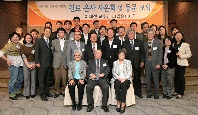 10월 22일 오후 6시 30분 동문회관 2층에서 이재선 국어국문학과 명예교수(사진 앞줄 정중앙)를 초청한 사은회 및 동문회였다. 김열규, 정연찬, 이승욱, 김학동, 김완진 명예교수 등은 일정이 맞지 않아 함께 자리하지 못했다. 30여 명이 참석한 가운데 행사 사회를 맡은 최시한(71) 동문은 “개교 50주년의 의미를 다시 되돌아보고, 국문과 창과 46주년을 기념해 원로 교수 사은회를 마련했다”라며 개회를 알렸다.