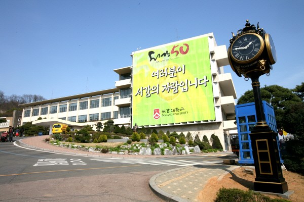 50주년 기념 시계탑은 김호연 총동문회장(74 무역)이 개교 50주년을 맞아 기증했습니다. 김 총동문회장은 지난해 중반 세계적인 시계 및 시계탑 제조업체인 미국의 버딘 디자인 그룹(Verdin Design Group)에 서강 50주년을 기념하는 시계탑 제작을 의뢰했습니다.