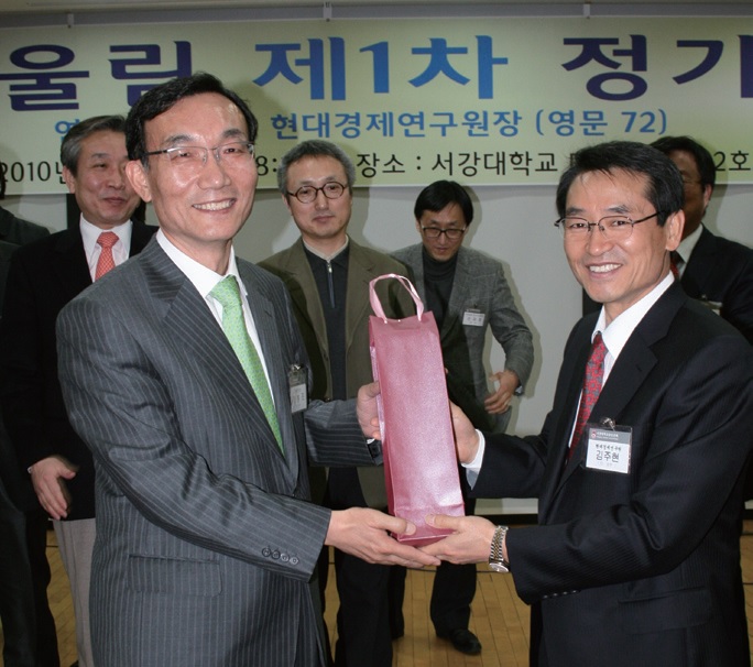 동문 포럼 서강울림(상임대표 73 정외 이봉조)이 제 1차 정기모임을 3월 18일 오후 6시 30분 모교 마태오관 9층에서 가졌습니다. 포럼 회원 20여 명이 참석한 가운데 개최된 첫 정기 모임은 김주현(72 영문) 현대경제연구원장이 준비한 강의로 막을 올렸습니다. 이날 사회를 맡은 김규륜(76 정외) 통일연구원 선임연구위원은 “올해 경제, 문화, 정치 등을 주제로 포럼을 진행해 나갈 계획입니다. 동문들끼리 준비하는 자리인 만큼 딱딱하지 않기를 바랍니다”라고 말하며 김주현 동문을 연단으로 초대했습니다.