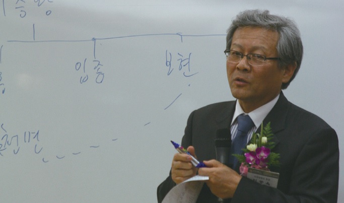 이어 진행된 특강에서 이종욱 총장은 지난해 직접 펴낸 ‘춘추’의 핵심 내용을 1시간 동안 설명하며 ‘춘추의 리더십’에 대해 강의했습니다. 총장직을 맡은 이후 모처럼 학자로서의 연구 업적을 소개하게 된 자리였던 때문인지, 이종욱 총장은 화이트 보드에 매직으로 써가며 열정적으로 강의했습니다. 덕분에 예정된 세미나 시간을 훌쩍 넘겨 강의가 끝났음에도 불구하고, 곳곳에서 질문이 쏟아졌습니다. 특히, 사회자인 임원현 동문은 질문을 받다가 본인이 가장 먼저 궁금한 내용을 질문하는 진풍경을 연출했습니다.