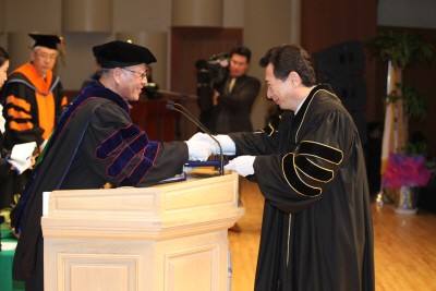 김호연(74 무역, 사진 오른쪽) 총동문회장이 2월 18일 ‘제26회 호서대 학위수여식’에서 명예사회복지학 박사학위를 받았다. 김회장은 빙그레 회장 시절 수년간 장학사업을 펼쳐 사회 양극화 해소에 기여했고, 기업의 사회적 책임을 실천하는데 앞장서는등 사회복지분야에 공헌한 점 등을 높히 평가받아 명예 사회복지학 박사학위를 받게 됐다.