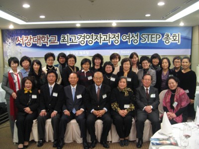 모교 최고경영자과정(이하 STEP)을 수료한 여성 CEO 모임 ‘여성 스텝(STEP)’의 2010년 총회가 1월 25일 오후 6시 서교호텔에서 열렸다. 여성 스텝 회원들을 비롯해, 유기풍 산학부총장,최운열 전 부총장, 임채운(75 무역) 전 경영전문대학원장, 이군희 최고경영자과정 부원장 등이 참석했다. 특히 박내회 모교 명예교수(현 숙명여대경영전문대학원 원장)와 이우용 모교 명예교수(현 사이버대학총장) 등이 참석해 ‘여성 스텝‘의 발전을 기원했다.