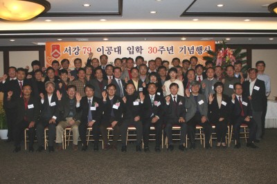 이러한 과정을 거쳐, 입학 30주년을 자축하는 79학번 이공대 동문들의 홈커밍데이가 11월28일 동문회관 3층에서 60여 명이 참석한 가운데 열렸습니다. 이선호 추진위원장의 개회선언으로 시작된 공식행사는 유기풍 산학부총장을비롯해 자연대와 공대의 학장과 학과장들의 축사가 이어졌습니다. 동영상으로 학교의 발전상을 확인하는 시간도 가졌습니다.