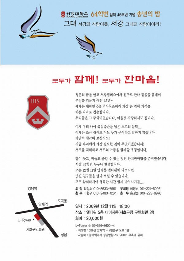64학번 입학 45주년 기리는 송년의 밤 페이지 정보 작성자 관리자 작성일09-11-18 09:47 조회25,331회 댓글0건 관련링크 프린트 목록 본문 64학번의 입학 45주년을 자축하는 송년의 밤 행사 알림입니다. 많은 동문들의 참여 부탁드립니다. 댓글목록 등록된 댓글이 없습니다. 프린트 목록