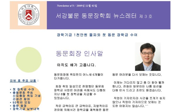 장학사업과 모임 등 활발하게 활동하고 있는 불문과 동문회(회장 85 도광환, 연합뉴스 사진부 차장)가 세번째 뉴스레터를 발행했습니다.