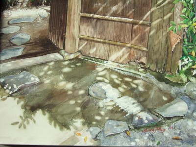 일본의 한 정원에 자리 잡고 있는 오래된 찻집에서 발견한 풍경이다. 쏟아지는 햇빛이 찻집 앞 빈공간의 주인 역할을 하고 있다. 햇빛으로 인해 한가로움이 더욱 커지고, 문 너머 뒤쪽 세계가 더 궁금해진다.