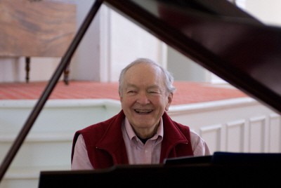 <윌리엄 퀴어리 모교 초기 영문과 교수가 피아노를 치고 있는 최근 모습.>