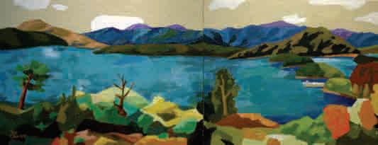 10년 정도 자연의 소리를 찾아 현장작업을 해왔다. 계곡, 바다, 산, 농가 등이 주된 작품 소재들이다. 이 가운데 가장 놓칠 수 없는 소재가 고향이다. 위 작품은 고향으로 접어드는 길목에 있는 주암호의 초가을 풍경이다. 주암호는 댐을 막아 만든 인공호수인데 전남도민 반 이상의 식수원이다. 시원하게 뚫린 전망에다가, 물에 잠겨 섬으로 변한 산봉우리들 사이로 배가 떠다니고 은행나무와 단풍나무 색이 눈앞에 펼쳐져 있기에 정말 넓고도 아름다운 풍경이다. 연작으로 이어나갈 생각인데 향후 3~4장 옆으로 이어가면 완성될 듯하다.