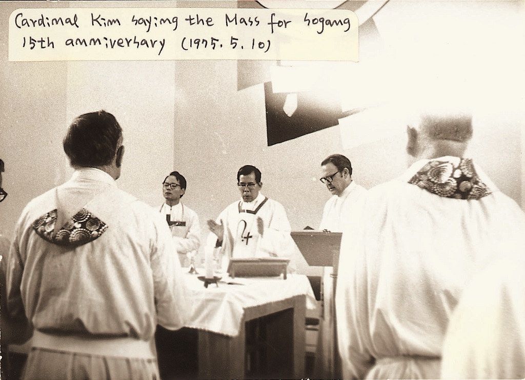 <1975년 5월 10일 거행된 개교 15주년 기념미사에서 김수환 추기경이 주례를 맡았다.>