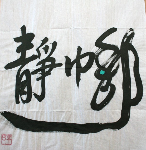 ‘조용한 가운데 생동한다’는 뜻의 이 휘호는 경기침체 여파로 비록 경제상황이 어렵지만 ‘할 수 있다’ ‘이겨낼 수 있다’는 적극적인 태도로 생활한다면, 역경을 이기고 세상을 바꿀 수 있다는 뜻으로 읽힙니다. 특히 ‘움직일 동’(動) 글자에 흘림체로 엑센트를 주면서 부수인 오른쪽의 힘 력(力)를 장강(長江)의 굽이치는 물줄기처럼 길고 힘차게 형상화한 것이 돋보입니다.
