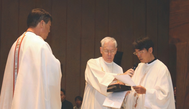 예수회한국관구장 임명장을 채준호 전 관구장으로부터 수여 받은 신원식 관구장은 민기식 부관구장의 도움을 받아 신앙선서와 충성서약을 차례로 했다.큰 박수로 환영을 받은 신 관구장은 “예수회에 입회했을 때 ‘앞으로 수련원장과 관구장 빼고 시키는 것 다 하겠습니다’라고 말했던 기억이 있다. 섬기는 사람으로, 봉사하는 사람으로 살고자 노력하겠다”고 취임 소감을 전했다. 신 관구장은 또 “사람 하는 일에 오해가 생길 수 있어 의사소통이 중요하다. 생각이 다르면 충분히 이해할 수 있도록 자주 만나서 대화하자”는 부탁의 말과 함께 “부족한 제가 6년 동안 맡은 일을 잘 수행할 수 있도록 도와주시기 바란다”고 말했다.