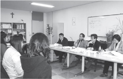 △3월 25일 오후 3시 모교 학생회관내 학생문화처에서 ‘서강 커리어 멘토링’에 참여할 재학생 멘티 선발 면접이 열렸다. 면접관에는 정명숙 총동문회 사무국장, 정훈 총동문회 부회장, 우찬제 학생문화처장, 유희석 취업지원팀장(사진 오른쪽부터) 등이 참여했다.