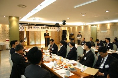 서강ROTC총동문회(회장 김영기)는 지난 2월 19일 12시 거구장에서 이사회를 열고 새 집행부인 16기 동문들을 격려했다. 이날 오전 10시 모교 청년광장에서는 서강학군단 제46기 장교 임관식이 거행되었고 손병두 총장과 김영기 회장, 손건하 단장 등이 참석했다. 이번에 장교로 임관하는 졸업생은 모두 32명으로, 손병두 총장과 김영기 회장은 이들에게 계급장을 달아주며 격려해 주었다. 서강대총동문회에서는 사관후보생 가운데 우수한 성적을 거둔 정태영(04·화공생명) 동문에게 동문회장상 및 부상을 증정했다.