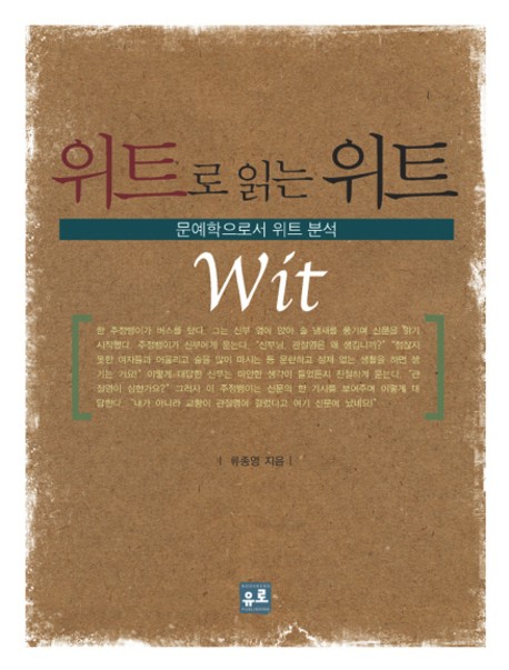 류종영(11981·독문) 목원대 독어독문학과 교수가 260여 개의 국내외 위트를 소개하고 위트의 특성을 설명해 놓았다. 저자는 현재의 위트는 하나의 정곡에서 절정을 이루고 웃음을 일으키는 짧은 이야기를 의미한다고 정의했다. 코믹과 웃음, 위트의 개념을 분석하고 마지막 장에서는 위트의 실례를 들었다. 윤리적 갈등, 신체적 결함, 사회