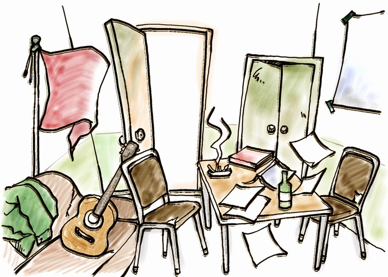 '진군화학'이라 쓰여진 빛바랜 초록색 깃발, 깨진 유리창, 낡은 철재 캐비냇, 그 안에 어지럽게 있던 낙서장, MT사진들, 사회주의 서적들.. 누군가 기타를 잡고 노래를 부르기 시작하면 이내 합창을 하곤 했던 그 곳.