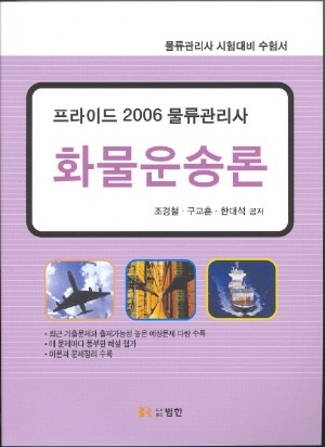 동북아 물류중심국의 견인차 역할을 담당하는 전문물류인력을 양성하기 위하여 건설교통부에서 시행하는 물류전문자격증인 "물류관리사" 시험('06.8.20 제 10회 시험 시행예정)을 앞두고 수험서와 대학교재로 사용할 수 있는 " 화물운송론" 이란 책을 4/30일 출판했습니다.