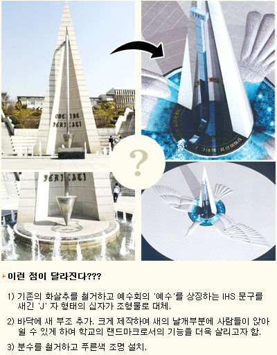 이와 함께 알바트로스 새의 부조를 탑의 바닥에 추가해 탑이 상징하는 바를 보다 구체화하고 학교의 발전적인 이미지를 부각시킨다는계획이다.