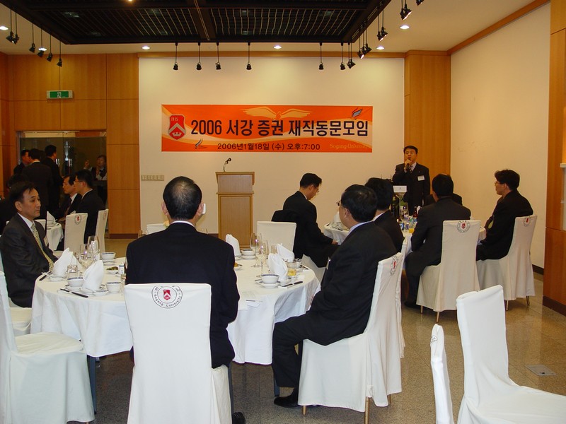 전체 서강출신 증권인의 숫자를 파악하기는 힘들지만 본사에 근무하는 직원만 대략 40여사에 400여명의 서강인이 증권업계에 종사하고 있는 것으로 파악됐는데 이중 모임에는 14사 30여명의 동문이 참석했다. 교내인사로는 최운열 부총장, 김원선 총무처장, 심종혁 대외협력처장, 우재철 홍보실장 등이 참석해 주었다.