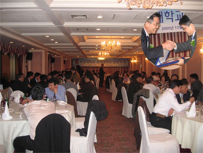 경제대학원 총동문회는 12월 7일 저녁7시에 2005년 송년회를 여의도 63빌딩 58층 르네상스홀에서 성대히 가졌다. 이날 모임에는 110여명의 동문 및 가족들께서 참석해 동문 상호간에 우의를 다지며 즐거운 시간을 가졌다.