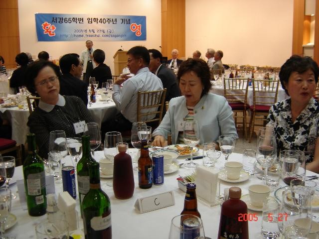 5월 27일 저녁 행사를 동문회관에서 치렀는데 동창들이 37명, 교수님들이 6분 오시어 기대하였던 만큼 많이 참석하지는 않았으나 애틋하고, 따뜻하고 또 즐거운 저녁 시간이었다. 국내에 거주하는 동창은 총 100명 정도. 미국에서도 동창이 참석하였다.