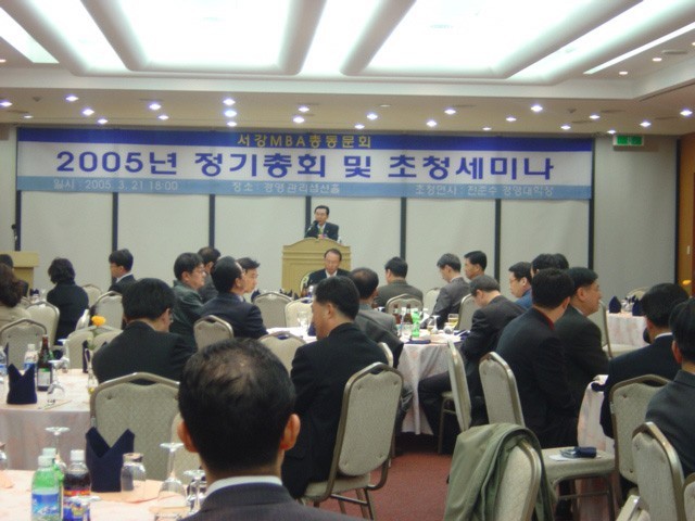 경영대학원 동문회(회장 방성석)는 3월 21일 저녁 6시 모교 마태오관 리셉션 홀에서 신임 회장과 감사를 선출하는 2005년도 정기총회를 가졌다. 신임 회장 후보로는 방성석(22기) 현 회장과 이의현(31기) 현 수석부회장이 경합을 벌인 끝에 방 회장이 제8대 회장으로 재추대 되었고, 감사는 양희영(19기), 염정순(22기)동문이 재임되었다.