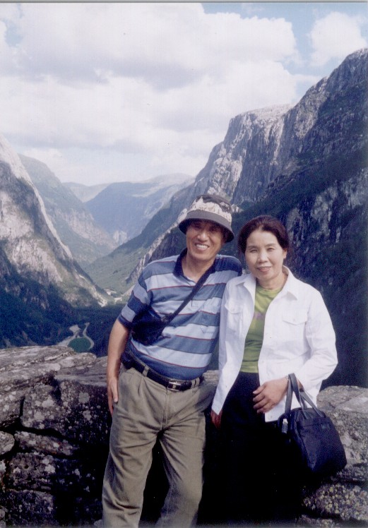 ◇사진설명: 2002년 노르웨이 스탈하임 지상 1,000m에 위치한 호텔 정원에서 아내와 함께.