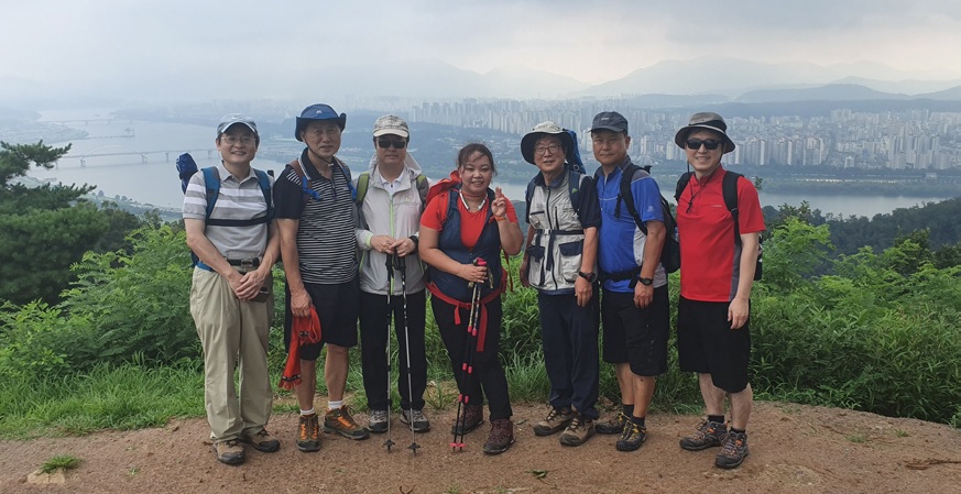 서울 동쪽 산에 올라 서쪽으로 쫙 펼쳐진 서울 시내를 조망하는 산행을 서강언론동문회 산악회(서산회)가 다녀왔습니다. 8월 17일 광진구 아차산과 용마산에 7명의 서강언론인들이 올랐습니다. 폭염 이어지는 염천이었으나 이날따라 간간히 빗방울 비치는 흐린 날씨 덕에 산행하기에 딱 좋은 날을 택한, 등산이 됐습니다.