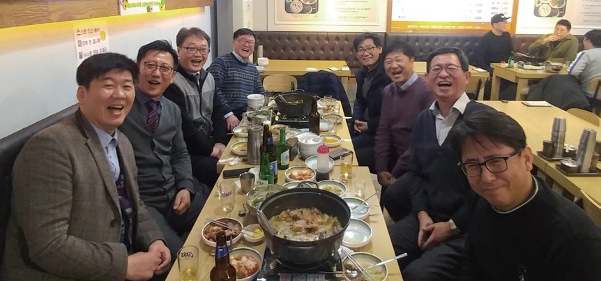 오랜 벗, 사학과 86~90학번 동문 9명이 모처럼 모여 파안대소했습니다. 조민재(87) 동문이 나서서 연락을 취했고 “오랜만에 모여 실컷 웃고, 실컷 마시고, 실컷 떠든 행복한 저녁이었다”라고 말했습니다.