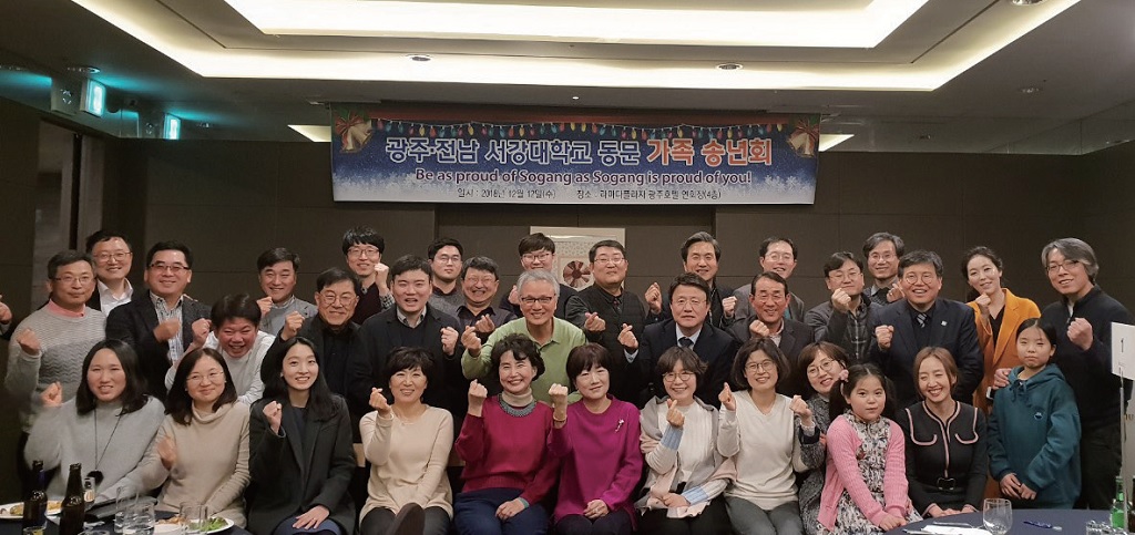 2018 광주·전남지역 서강동문가족 송년회가 12월 12일 오후 7시 라마다플라자호텔 연회장 4층에서 열렸습니다. 동문들끼리 서로 교환할 수 있는 선물을 마련해오는 게 회비 요건이었습니다. 동문과 동문 가족 등 40여 명이 참석한 가운데 저녁 식사를 함께 하며 서로 덕담을 나눴습니다. 김대중(84 철학) 광주·전남 동문회장은 “동문 가족의 기쁜 일 슬픈 일들에 함께하며 1년을 보냈다”라며 “우리 동문회 전통에 따라 가족들과 함께 하는 행사로 동행해 주신 가족 여러분께 더욱 큰 감사를 드린다”라고 인사했습니다.