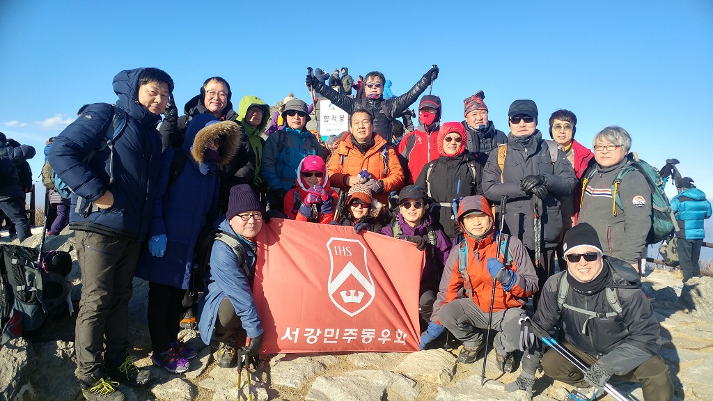 서강민주동우회 산우회는 새해 첫 산행을 덕유산으로 정해, 1월 5일 향적봉(1614m)에 올랐습니다. 시산제를 진행할 수 없을 만큼 바람이 거세게 휘몰아쳐서 현수막을 펼치고 기념사진을 찍는 것으로 대신했습니다.