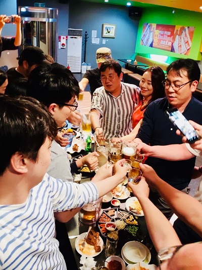 언론대학원 동문회(회장 17기 이상민)가 제1회 서강컴온 호프데이 행사를 열었습니다. 20여 명이 참여하는 일상 소모임을 마련하자는 취지로 개최한 첫 행사는 7월 6일 오후 7시 30분 합정역 인근 카우카우펍에서 열렸습니다. 동문, 재학생, 교수, 직원 등 25명이 참석한 가운데 대학원 발전을 도모하자는 공감대가 만들어졌습니다. 1차 호프 타임 이후 2차 술자리는 소주잔을 기울이며 이어졌다. 동문회는 앞으로 홀수 달 첫 번째 금요일마다 정기 호프 데이를 갖기로 의기투합했습니다.