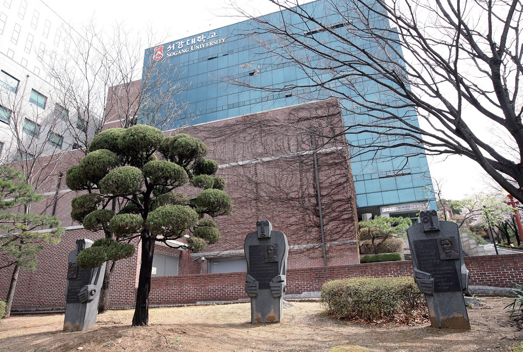 ‘이 곳은 축성된 터전이니 주님의 빛 사제 프랑스사람 앵베르 주교 모방 신부 샤스탕 신부 세 분은 조선교회 초기의 피바람 속에 입국하여 영원한 생명의 참 진리를 밝히다가 기해박해 때 순교하여 여기 노고산 자락에 묻혔었다. 그 숭고한 정신을 받들고자 이 부지에 서강대학교가 설립되어 인재를 배출해 오고 있으며 위 세 분은 1984년에 성인으로 시성되었다. 진리의 전파와 인류의 구원이라는 대학의 소명을 서강대학교는 숙연히 지켜갈 것이며 세 분 성인은 기리 우리를 비추고 가호하리라.’