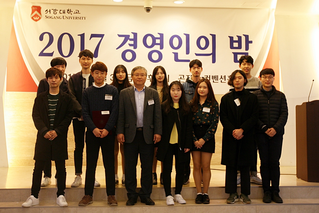 18회째 이어지는 ‘2017 경영인의 밤’ 행사가 11월 3일 오후 6시 모교 곤자가 컨벤션 홀에서 열렸습니다. 경영대 동문, 교수, 재학생 등 200여 명이 참석한 가운데 성적우수(Dean’s List) 시상, 인본 장학금, 故고정섭 교수 추모 장학금, 경영학부 동문회 장학금, 서강경영 후배사랑 장학금 등을 차례로 진행했습니다.