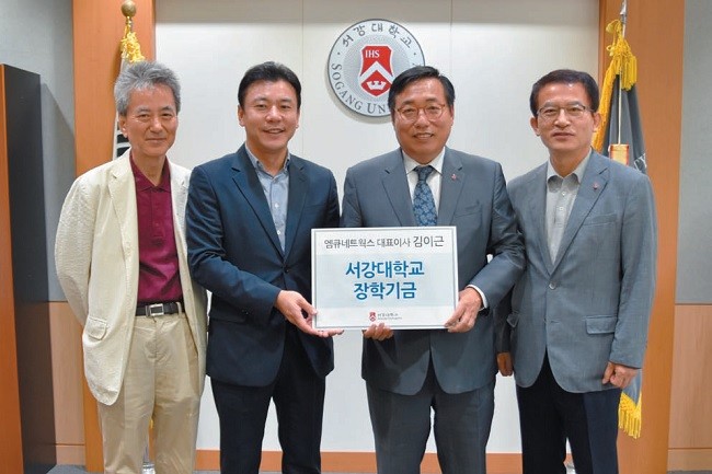 서강연극반 활성화와 문화 증진을 위해 엠큐 네트웍스(대표이사 84 경영 김이근)가 장학금 1000만 원을 모교 연극반에 6월 21일 전달했습니다. 총장실에서 마련된 전달식에는 서강연극반 출신인 김이근 동문을 비롯해 유기풍 총장, 이장규 대외부총장, 김용수 커뮤니케이션학부 학장 등 교내외 인사가 참석했습니다. 김이근 동문은 “연극반 후배들이 활발하게 활동할 수 있도록 기금을 약정했다”라며 ”앞으로 더 풍부한 문화가 학교에 깃들기를 바란다”라고 말했습니다.
