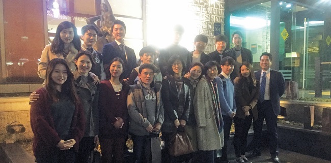 글라라 장학생 정기 모임이 3월 21일 저녁 7시 30분 논현동 ‘한우리’에서 열렸습니다. 이날 장학금을 만든 김윤심(75 철학) 동문과 장학생을 선발하는 한징택(75 생명) 모교 생명공학과 교수, 장학생 17명 및 정영미(02 사학) 동문장학회 직원이 참석했습니다. 장학금 기부자 김윤심(75 철학) 동문과 글라라 장학생들은 2011년 3월 첫 모임 이후, 매년 3월 셋째 주와 11월 첫째 주 월요일마다 모이고 있습니다.