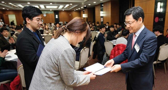 2016학년도 1학기 서강동문장학회(이사장 76 전자 김덕용) 장학증서 전달식이 3월 16일 모교 마태오관 9층 리셉션 홀에서 열렸습니다. 이날 행사는 장학금 기탁자와 장학생이 참석한 가운데 정영미(02 사학) 동문장학회 직원의 사회로 진행됐습니다. 정성태(75 영문) 동문장학회 이사는 “학생들이 학업에 매진하는데 조금이라도 보탬이 되면 좋겠고, 어떤 상황이라도 열정을 잃지 말고 도전하는 후배들을 기대한다”라며 “동문님들께도 동문장학회에 대한 더욱 많은 관심과 참여를 부탁 드린다”라고 말했습니다.