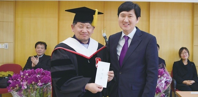 영상대학원 동문회가 2월 12일 제29회 학위수여식에서 김학순 영상대학원장에게 재학생 학업지원 명목으로 장학금을 전달했습니다. 이번 장학금은 영상대학원 자립과 후배를 위해 영상대학원 동문회가 발족 이후 처음으로 전달하는 것이어서 의의가 컸습니다. 장학금 전달식에는 홍용락(영상 2001, 사진 오른쪽) 동문회장, 김준철(영상 2004) 사무총장을 비롯한 여러 동문들이 참석해 뜻을 같이 했습니다. 영상대학원 자립을 위한 후원의 필요성을 공감한 동문들은 향후 체계적으로 모든 동문들의 참여를 유도할 계획입니다.