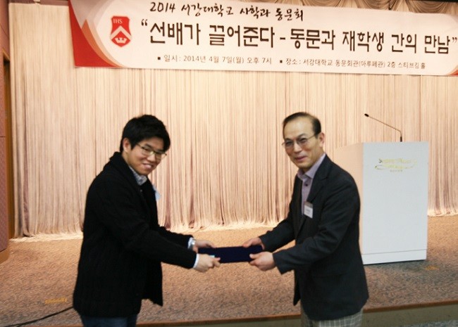 사학과 동문회(회장 75 홍석범) 주최 ‘선배가 끌어준다-동문과 재학생의 만남’ 행사가 4월 7일 오후 6시 30분 동문회관 2층 스티브김홀에서 열렸습니다. ‘사학과 동문회 장학금’의 첫 장학증서 수여식을 겸한 이번 행사는 사학과 동문 24명과 교수 7명 및 재학생 30명이 참석했습니다.