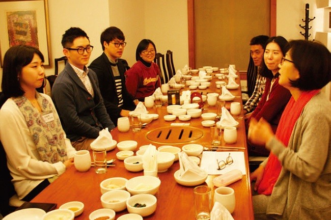 글라라 장학생 정기모임이 11월 4일 오후 8시 논현동 ‘한우리’에서 열렸습니다. 장학금을 기탁하는 김윤심(75 철학) 동문과 장학생 10명 및 정영미(02 사학) 동문장학회 직원이 참석했습니다.
