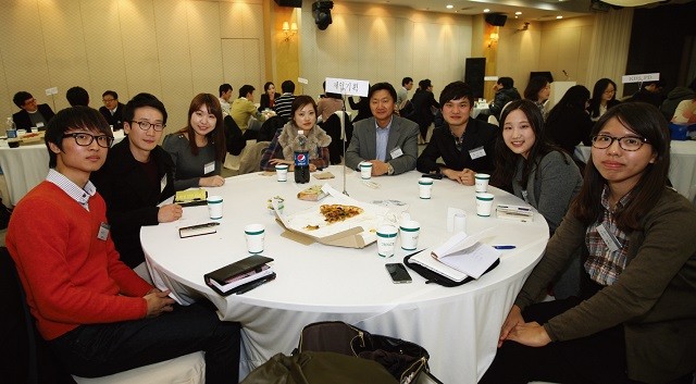 분야별로 나뉜 테이블에서 간단한 식사를 마친 뒤, 장윤호(02 컴퓨터) 동문의 사회로 멘토링은 시작됐습니다. 동문 멘토들이 차례로 자기소개에 나서는 동안 제일기획에 근무하는 김수련(98 신방) 동문은 “하는 일 뿐만 아니라 결혼, 육아와 직장을 병행하는 방법 등 경험에서 우러나오는 조언까지 해주고 싶다”라며 “특히 캠퍼스 커플에 대한 고민을 상담한다면, 뜯어 말리고 싶다”라고 말해 큰 웃음을 자아냈습니다.