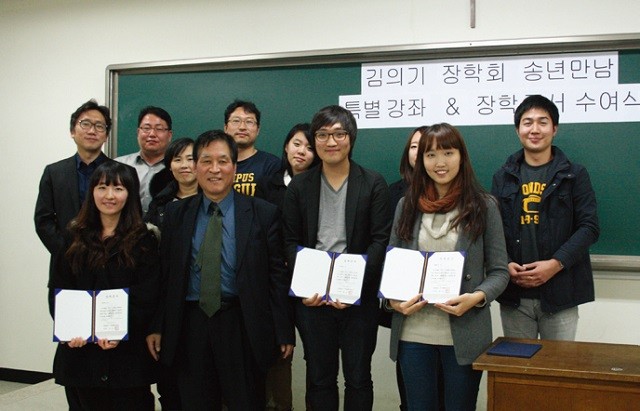 ‘김의기(76 무역) 선배를 기억하는 동문 장학모임(이하 장학모임)’ 특별강연 및 장학증서 수여식이 11월 15일 오후 7시 K507에서 열렸습니다. 장학기금을 기탁한 동문과 장학생 등 10여명이 참석했습니다.