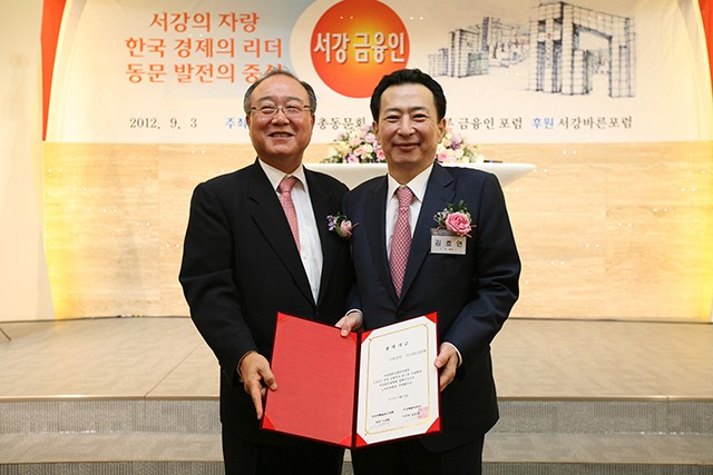 이상돈 포럼 회장은 9월 3일 금융권에 종사하는 동문들이 친목과 단합을 도모하고자 개최한 ‘2012 서강금융인의 날’ 행사에서 서강동문장학회 이사장을 겸하고 있는 김호연 총동문회장에게 1000만원을 장학기금으로 기탁했습니다.