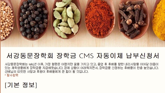 서강동문장학회가 장학금 CMS(Cash Management Service) 자동이체 후원 서비스를 신설했습니다. 매월 지정일자에 기부자 계좌에서 약정한 금액이 자동 인출돼 장학회 계좌로 입금되는 방식입니다. 해마다 등록금 지원을 신청하는 후배들이 늘어나는 반면, 장학기금은 수요를 절반도 따라가지 못하는 상황에서 마련한 상시적인 나눔 기회입니다.