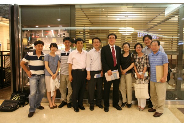 <왼쪽부터 주윤철(89 철학), 이지숙(02 화학), 김해룡(98 경제), 이갑섭(86 경영), 강석원(83 경영), 박상환(69 무역), 김미자(64 국문), 정영애(75 신방), 한대희(94 경제), 이동훈(88 영문) 동문>