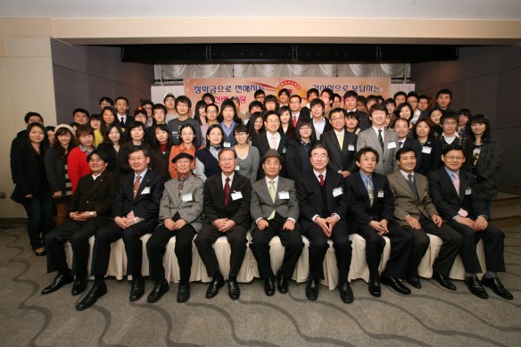 이어 2009년도 이후 신설된 장학금 수여식을 ‘처음이자 마지막’으로 마련했습니다. 2년 전까지는 장학증서 수여식이 재학생 모두에게 일일이 장학증서를 주는 시혜자 중심의 ‘딱딱한 형식’으로 진행해왔습니다. 그러다가 행사를 개선해 참석한 최고참 선배가 대표로 1~2명의 후배에게 증서를 수여하는 것으로 형식을 바꾸었습니다. 다만 새로 조성한 장학금에 한해 ‘1차례 증서수여’를 하기로 한 것입니다.