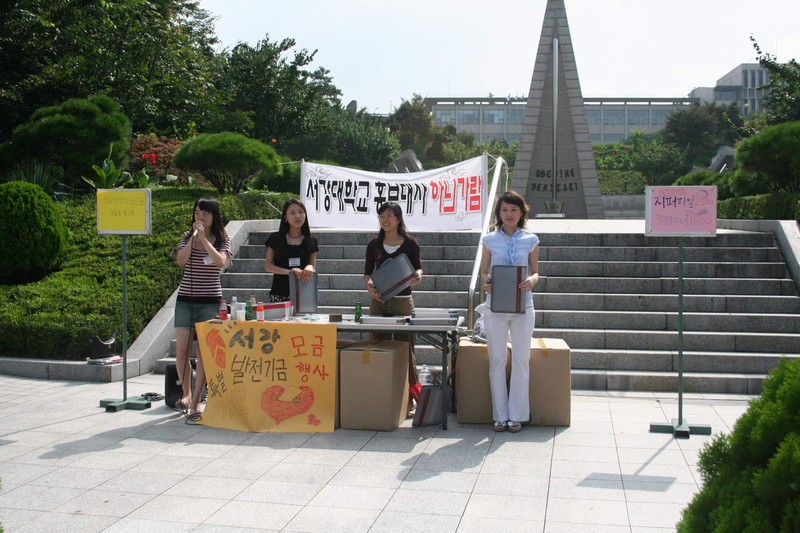 서강홍보대사 ‘하늬가람’이 개강을 맞아 지난 8월 28일부터 3일간 학교 로고가 새겨진 지퍼파일과 핸드폰 크리너를 등교 길 정문에서 판매했다. ‘모든 학생들이 서강의 홍보대사’라는 취지에서 시작한 이번 행사는 많은 학생들의 호응을 받았다. 3일 동안 진행된 이번 행사에 참여하지 못한 학생들은 학생회관에 있는 기념품점에서 계속 팔아달라며 게시판에 아쉬움을 남기기도. ‘하늬가람’은 이번 행사의 수익금 모두를 ‘서강발전기금’으로 기부할 예정이다.
