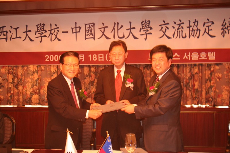 이날 MOU 체결식에는 손병두 총장과 최운열 대외부총장, 정현식 대외협력처장을 비롯 중국문화대학 張鏡湖(짱징후)이사장, 李天任(리티엔런) 총장, 대만대표부 참사 등이 참석해 교수 및 학생 교환, 학술자료 교환, 학술 문화연구협력, 송도프로젝트 협력 등 양 대학 간의 실질적인 교류협력을 위한 구체사항에 서명했다.