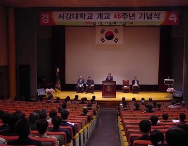 미사에 후 이냐시오 강당에서는 개교기념식이 거행됐다. 1960년에설립된 이후 오늘에 이르기까지 서강의 변천사를 한눈에 볼 수 있는 영상물이 상영되었다. 초창기 서강은 수준높은 강의와 엄격한 학사관리에 인격적이고 가족적인 분위기가 더해져 우수한 학생들을 길러내는 최상의 교육장이었다. 이후‘작지만 강한 대학' 이란 명성에 안주하는 동안 타대학들은 저만치 달려나갔고 서강은 치열한 경쟁의 틈바구니에서 우위를 잃게 됐다. 그렇게 맞이한 2000년대. 이제는 국경을 넘어 세계 속의 대학으로 도약하기 위한 더 큰 목표와 함께 해결해야 할 과제가 산적해 있다.